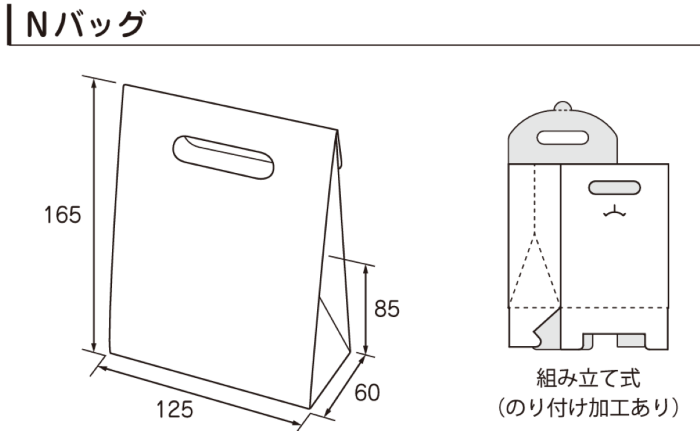 パッケージ中澤の「Nバッグ」は、きちんと感のあるストレートな形状のギフト箱です。商品を上品に魅せてくれます。取っ手があるため単品の持ち帰り商品用としてもおすすめです。